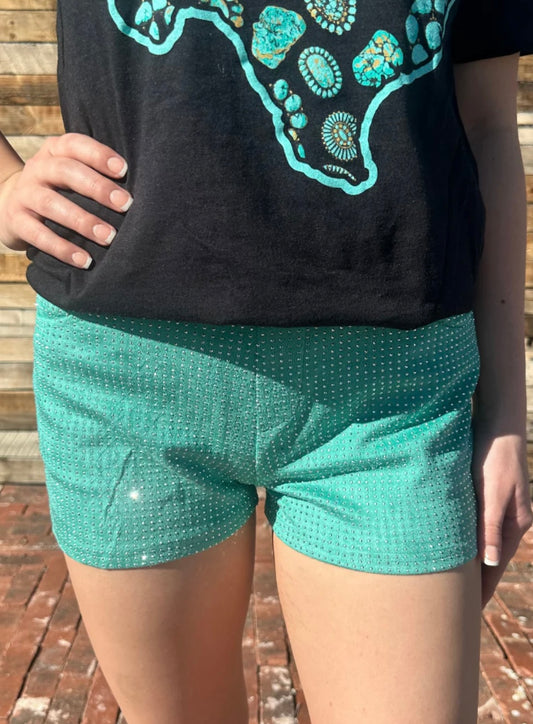 Rhinestone Shorts Turquoise