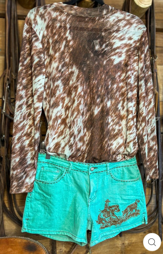 Turquoise Cowboy Cutter Shorts