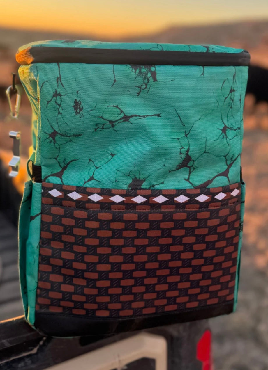 Get ready to make some memories with this Turquoise cooler backpack! Perfect for lake days, its multiple pockets and insulated cooler will keep your drinks cold and your hands free. And don't forget the cute brown checkered and turquoise stone patterns, plus a handy bottle opener keychain. Cheers!