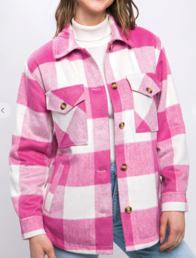 Plaid Button Down Jacket outlined sherpa fur inside with Front Pocket Detail